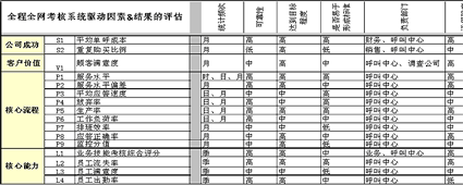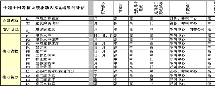 上表為與全程全網(wǎng)考核策略目標(biāo)相匹配的驅(qū)動因素指標(biāo)與結(jié)果指標(biāo)的列示。