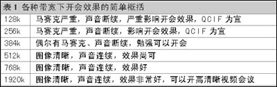 網絡環(huán)境差,可以選擇低帶寬產品,側重H.261、H.263、MPEG4的產品,尤其是H.263,在低帶寬下比其他算法效果好。如果用戶網絡帶寬非常窄,對視頻會議設備的投入預算也比較小,可以考慮桌面系統(tǒng)、軟件視頻等解決方案,采用QCIF格式開會,不失為一種經濟實用的辦法。