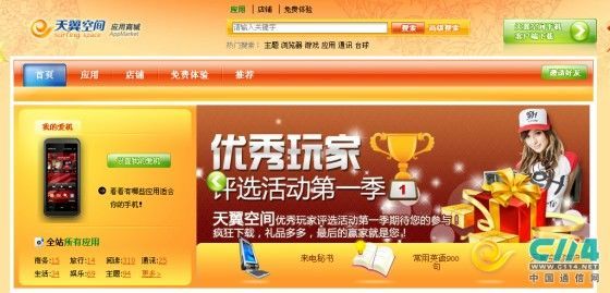四川電信天翼空間應(yīng)用商城公測(cè)版的上線公告中稱,該商城不僅為廣大用戶提供手機(jī)應(yīng)用下載,更為手機(jī)應(yīng)用開發(fā)商提供在線銷售的平臺(tái)。四川電信應(yīng)用商城目前推出了主要11類應(yīng)用,包括游戲、主題、娛樂、生活、閱讀、通訊、商務(wù)、旅行、教育、財(cái)經(jīng)、工具;軟件平臺(tái)包括WindowsMobile、 Symbian、Java、widget、BlackBerry等。