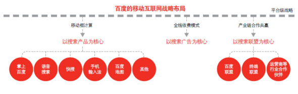 百度無線的戰(zhàn)略仍將以搜索作為核心。“百度在無線方面的核心發(fā)展規(guī)劃就三條:第一條,以搜索產(chǎn)品為核心布局移動框計(jì)算。第二條,以搜索廣告位核心,探索全線收費(fèi)模式。第三條,以搜索聯(lián)盟為核心,推動產(chǎn)業(yè)鏈合作共贏!边@是百度的官方說法。